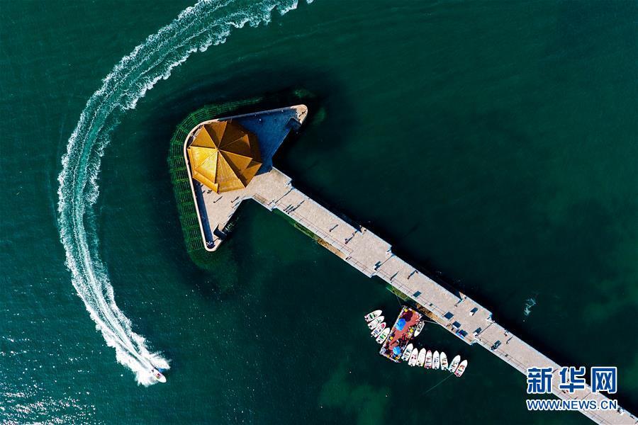 一艘游艇駛過山東青島棧橋旁的海面(5月4日無人機(jī)拍攝)。 在即將過去的2018年,各地?cái)z影師用鏡頭記錄下四季中國。大江南北,一幅幅色彩斑斕的美麗畫卷徐徐展開。 新華社記者 郭緒雷 攝