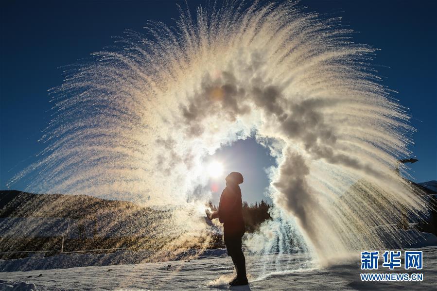 1月22日,在新疆阿勒泰地區(qū)布爾津縣禾木村,來自烏魯木齊的游客體驗(yàn)“潑水成冰”。 在即將過去的2018年,各地?cái)z影師用鏡頭記錄下四季中國。大江南北,一幅幅色彩斑斕的美麗畫卷徐徐展開。 新華社記者李京攝