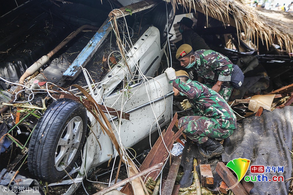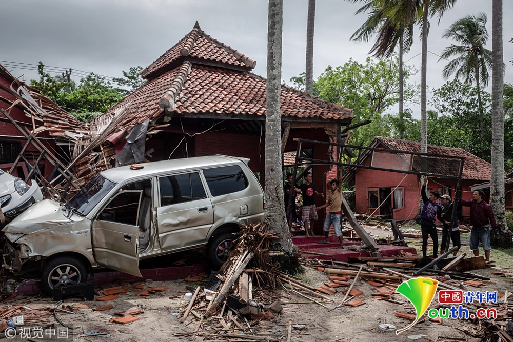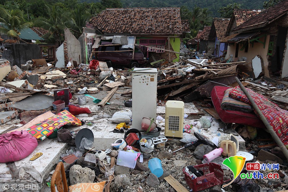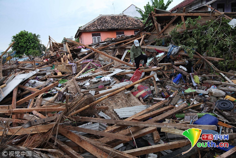 當?shù)貢r間2018年12月24日,印度尼西亞萬丹省卡里塔,現(xiàn)場遍地廢墟,一片狼藉。22日夜間的一次海嘯襲擊了印度尼西亞爪哇島西海岸。印尼國家災(zāi)難機構(gòu)24日表示,印尼火山引發(fā)的海嘯造成的死亡人數(shù)已經(jīng)上升至373人,1000多人受傷。