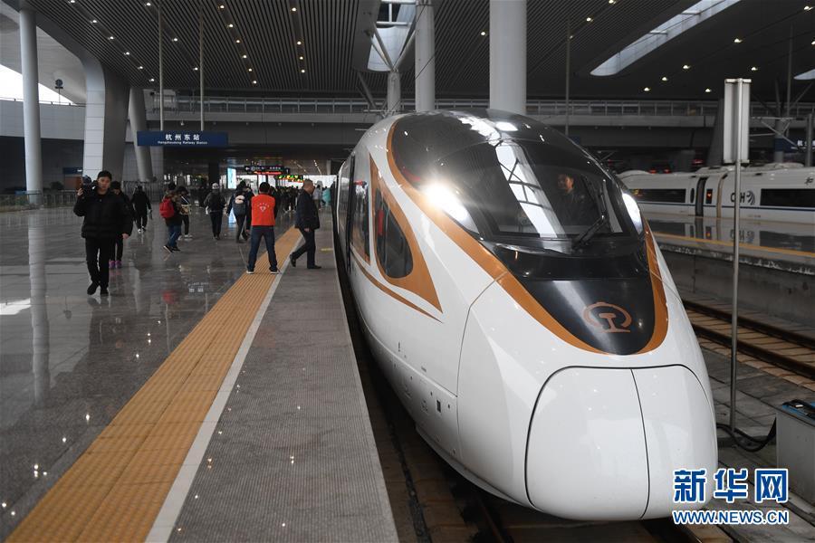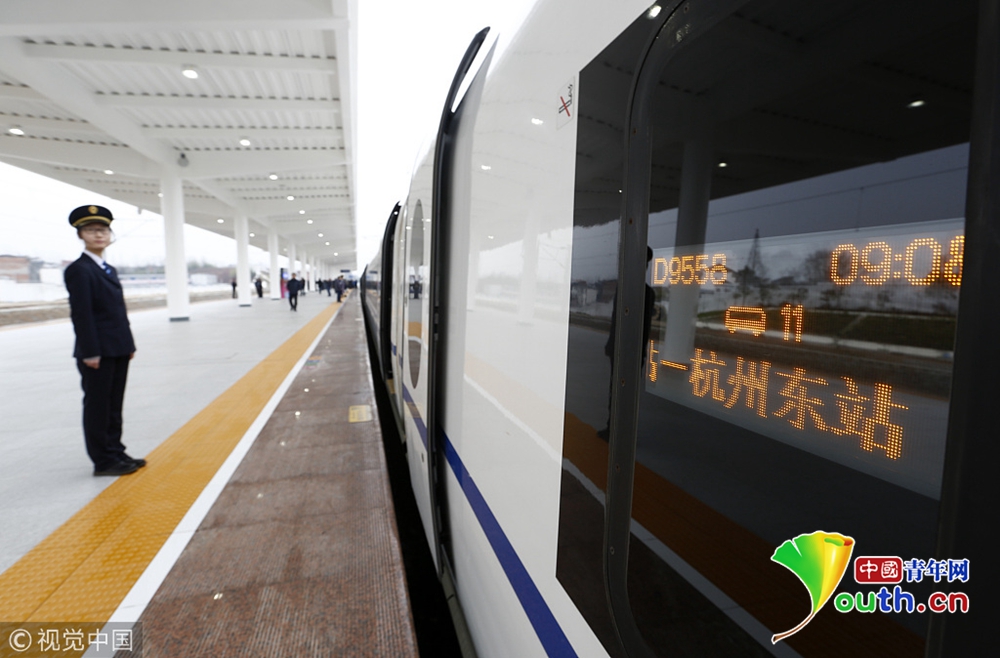 12月25日,杭黃高鐵D9551次首發(fā)列車(chē)即將從杭州東站駛出。