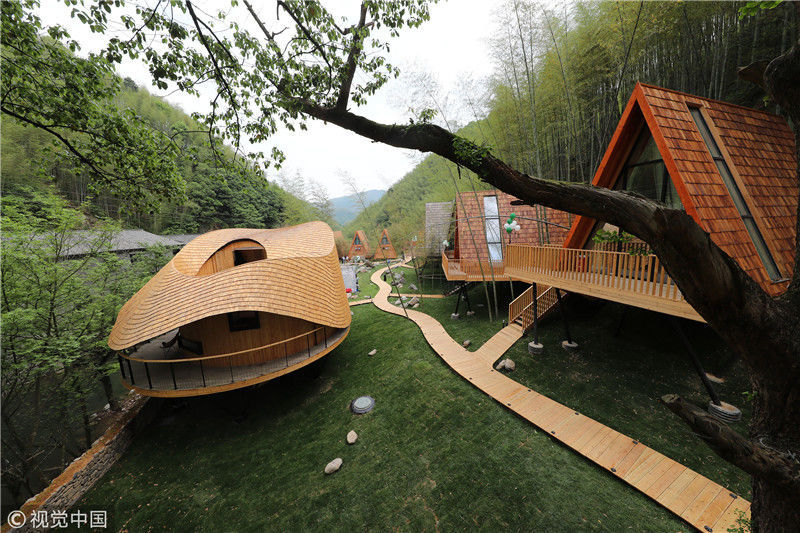 2018年4月22日,浙江寧波,樹(shù)蛙部落的特色房屋。張培堅(jiān)/視覺(jué)中國(guó)