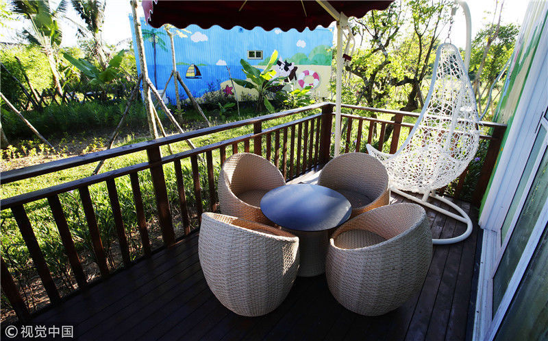 2017年8月9日,海南屯昌,坡心鎮(zhèn)豬哈哈的農(nóng)場(chǎng)正式推出“集裝箱客房”項(xiàng)目,這也是海南首家主題式集裝箱住宿。齊淼/視覺中國(guó)