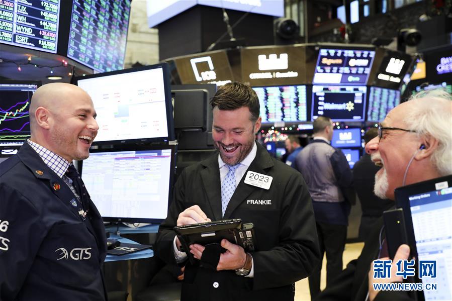 12月26日,交易員在美國紐約證券交易所收盤后慶祝。新華社記者 王迎 攝