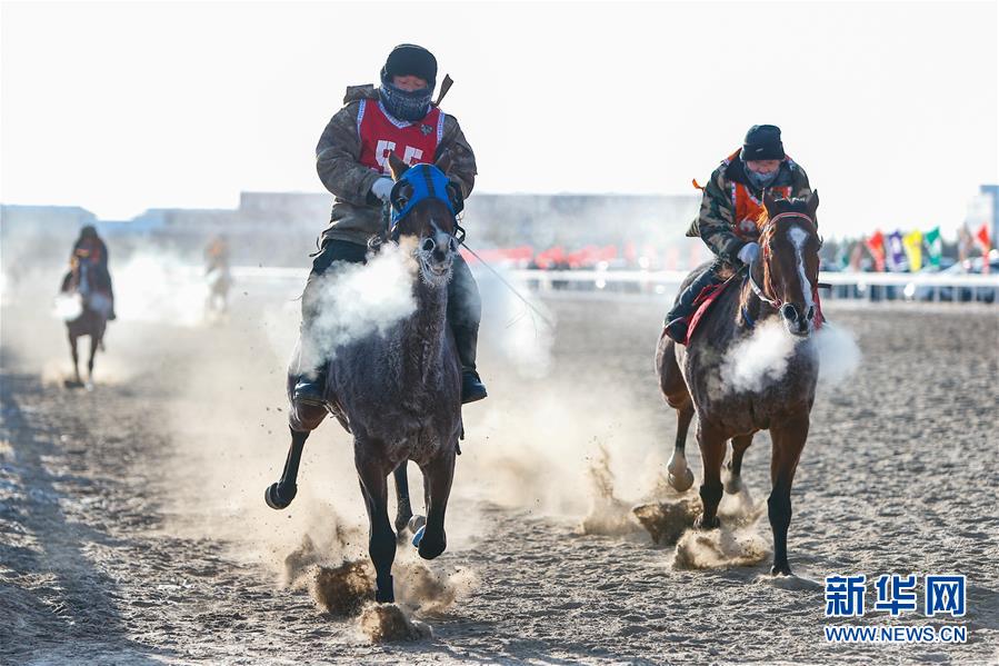12月26日,牧民在進行賽馬。 當(dāng)日,內(nèi)蒙古冰雪那達慕系列活動在呼倫貝爾市鄂溫克旗繼續(xù)進行,牧民歡聚一堂,參加各種賽事和趣味項目。 新華社記者 虞東升 攝