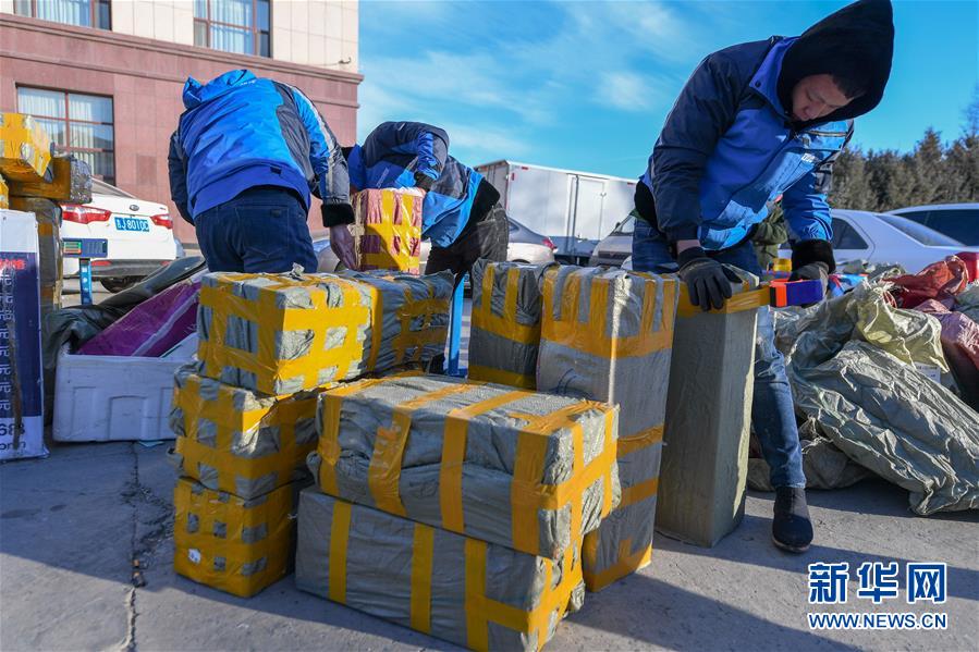 12月27日,在吉林松原查干湖漁場(chǎng),快遞員將魚(yú)打包準(zhǔn)備發(fā)給客戶(hù)。 隨著吉林松原查干湖冬捕知名度不斷提高,全國(guó)各地消費(fèi)者對(duì)查干湖魚(yú)的需求量逐年增大。2014年開(kāi)始,多個(gè)電商平臺(tái)和快遞企業(yè)紛紛抓住商機(jī)進(jìn)駐查干湖。經(jīng)過(guò)多年發(fā)展,借助互聯(lián)網(wǎng)銷(xiāo)售優(yōu)勢(shì)和日趨完善的快遞網(wǎng)絡(luò),全國(guó)多地的百姓可以在魚(yú)出水后的48小時(shí)內(nèi)品嘗到查干湖魚(yú)的鮮美滋味。 新華社記者張楠攝