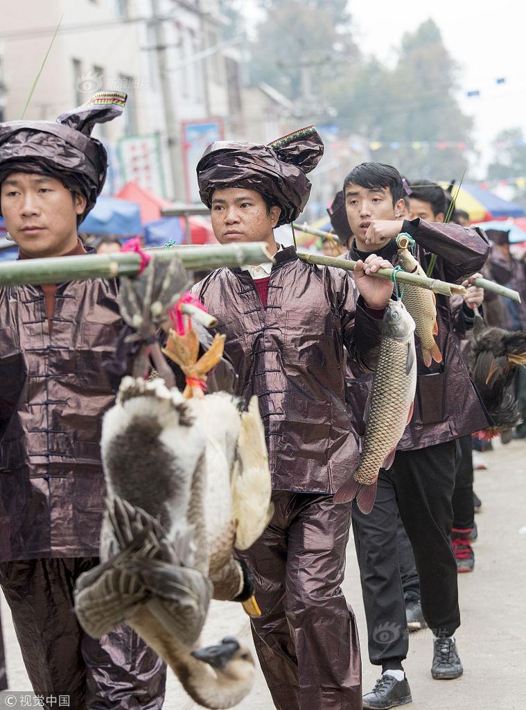 2018年11月19日,侗族同胞在參加貴州省從江縣慶云鎮(zhèn)“凍魚節(jié)”祭薩儀式。 據(jù)了解,“凍魚節(jié)”是當(dāng)?shù)亍笆稀倍弊逋赜械募漓雮鹘y(tǒng)節(jié)日,定在每年農(nóng)歷的10月12日,是人們紀(jì)念祖先遷徙而舉辦的規(guī)模盛大的節(jié)日,至今已有500多年的歷史。節(jié)日期間,主人邀請親友聚餐、參與慶?;顒?,共享豐收喜悅。
