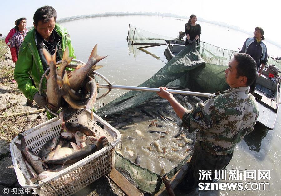 深圳新聞網(wǎng)訊  江蘇揚(yáng)州,邗江區(qū)公道鎮(zhèn)南湖村南湖水域,專業(yè)捕撈隊人員已集結(jié)到胡登強(qiáng)養(yǎng)殖戶家魚塘進(jìn)行捕撈作業(yè)。據(jù)捕撈隊員沈昌田介紹,近期隨氣溫轉(zhuǎn)冷,魚的銷量增加,水產(chǎn)養(yǎng)殖戶紛紛捕魚上市,為趕在上午10時將魚運(yùn)到水產(chǎn)批發(fā)市場銷售,專業(yè)捕撈隊員們天不亮就起床,下河塘布圍網(wǎng)、收網(wǎng)撈魚、過秤裝車。一周捕撈作業(yè)有三四次之多,一次捕撈多達(dá)上萬斤魚。公道鎮(zhèn)有水面灘涂6.5萬畝,是魚、蝦、蟹、等水產(chǎn)品養(yǎng)殖的理想場所。
