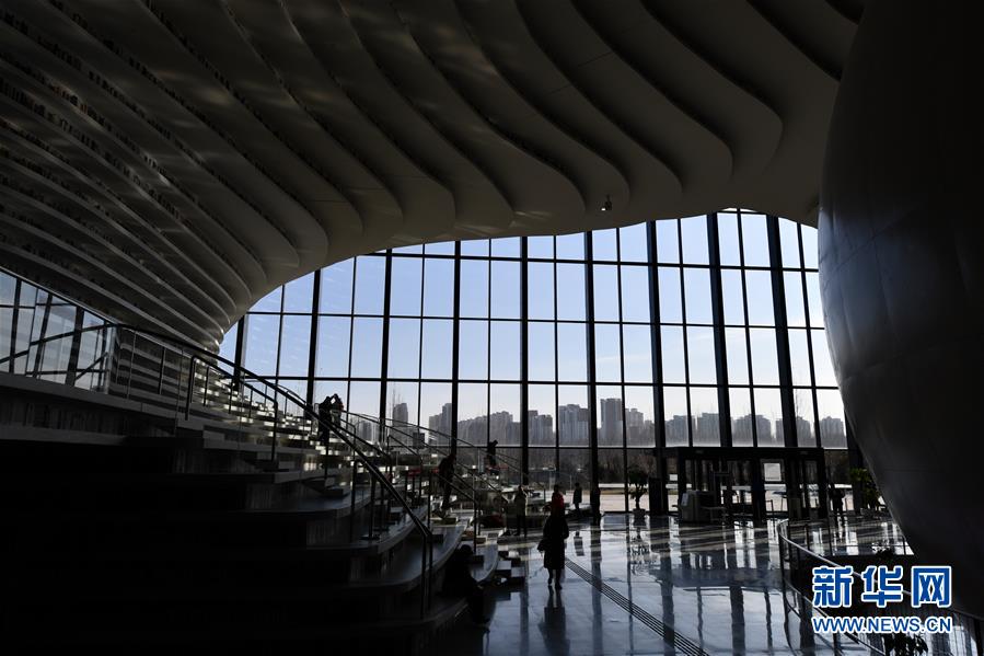 這是12月27日拍攝的天津?yàn)I海新區(qū)圖書館中庭。 濱海新區(qū)圖書館位于天津?yàn)I海文化中心,2017年10月1日正式開館,設(shè)計(jì)立意為“濱海之眼”和“書山有路勤為徑”。圖書館現(xiàn)有藏書60多萬冊(cè),一年多來接待讀者約280萬人次,已成為濱海新區(qū)的文化“新地標(biāo)”。 新華社記者安希雅攝
