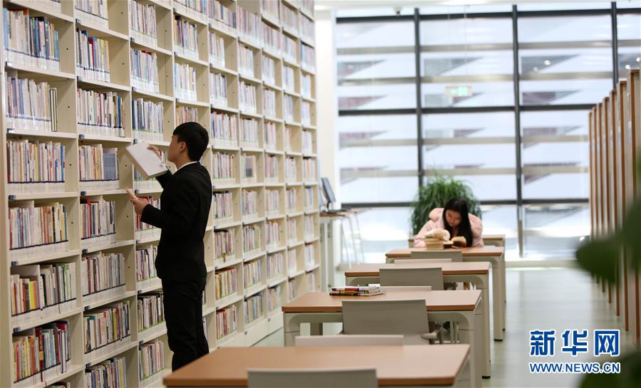 12月27日,在天津?yàn)I海新區(qū)圖書館,工作人員(左)在閱覽室中擺放圖書。 濱海新區(qū)圖書館位于天津?yàn)I海文化中心,2017年10月1日正式開館,設(shè)計(jì)立意為“濱海之眼”和“書山有路勤為徑”。圖書館現(xiàn)有藏書60多萬(wàn)冊(cè),一年多來(lái)接待讀者約280萬(wàn)人次,已成為濱海新區(qū)的文化“新地標(biāo)”。 新華社記者伍婧丹攝