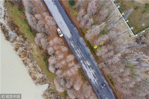 2018年12月27日,江蘇淮安,航拍京杭大運(yùn)河淮安段冬日景色。吳揚(yáng)/視覺中國(guó)