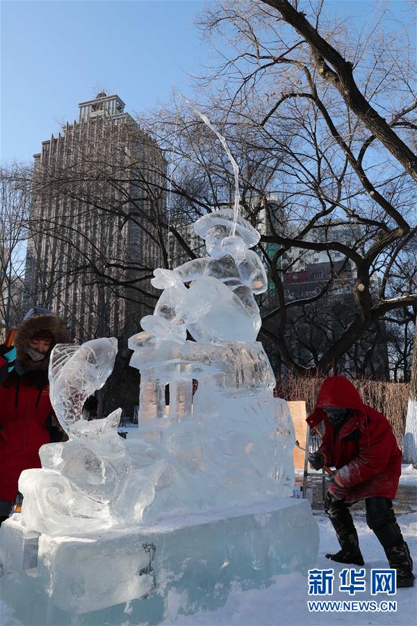 12月27日,選手們?cè)诒荣愔型晟票褡髌贰?當(dāng)日,第十六屆黑龍江省大學(xué)生冰雕藝術(shù)設(shè)計(jì)創(chuàng)作大賽在哈爾濱兆麟公園落下帷幕,全省高校共有99支隊(duì)伍參賽。 新華社記者曹霽陽(yáng)攝