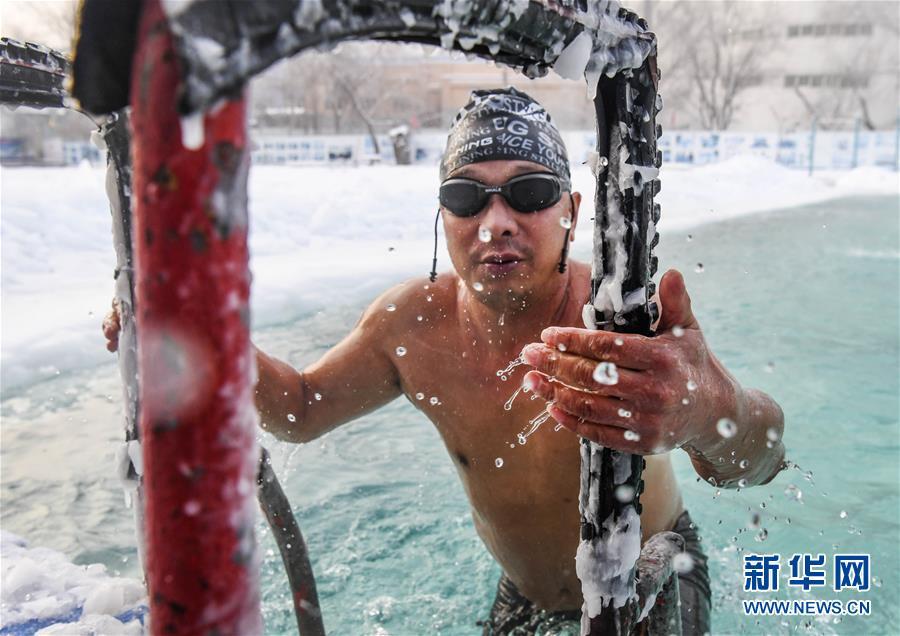 當(dāng)日,新疆烏魯木齊戶外氣溫接近零下20攝氏度,許多冬泳愛好者不懼嚴(yán)寒,來到烏魯木齊紅山游泳中心戶外泳池進(jìn)行冬泳運動,鍛煉身體,磨練意志。