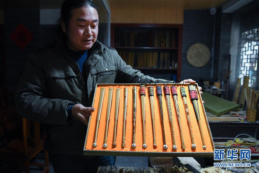 12月29日,在鄣吳鎮(zhèn)的老街上一家制扇工作室內(nèi),制扇藝人展示他制作的不同類型的扇骨。 當(dāng)日,“中國竹扇之鄉(xiāng)”——浙江省安吉縣鄣吳鎮(zhèn)舉辦傳統(tǒng)文化迎新年活動。舉辦包括扇文化博覽會、扇面藝術(shù)展、制扇工藝展示及金石、拓印文化展示等活動,弘揚(yáng)中華優(yōu)秀傳統(tǒng)文化。 自上世紀(jì)七十年代以來,鄣吳鎮(zhèn)開始發(fā)展制扇產(chǎn)業(yè),現(xiàn)在該鎮(zhèn)有各類制扇企業(yè)80余家,制扇行業(yè)從業(yè)人員2000多人,年產(chǎn)值達(dá)2億多元。 新華社記者 徐昱攝