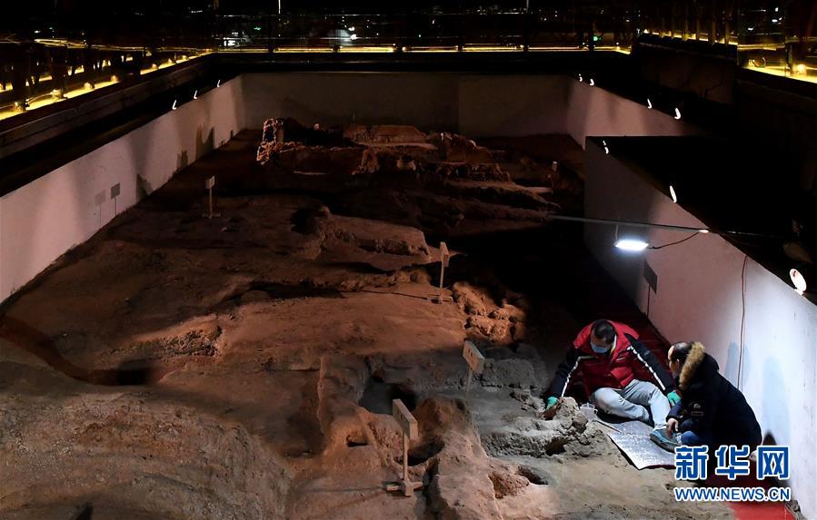 在河南鄭州大河村遺址博物館,科研人員在對仰韶文化房基進(jìn)行體檢、加固(12月11日攝)。