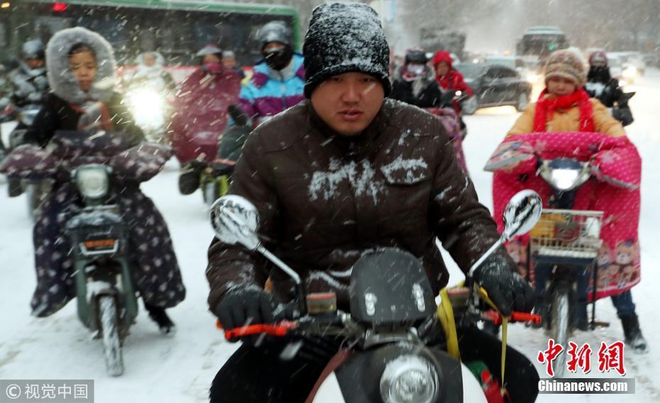 此次是石家莊入冬以來(lái)出現(xiàn)的第二次降雪天氣,對(duì)交通安全帶來(lái)影響。圖片來(lái)源:視覺(jué)中國(guó)