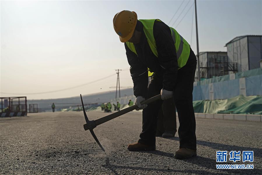 2019年1月1日,工人在北京大興國際機場中建三局三公司工地上剔鑿井口。 當(dāng)日是新年第一天,眾多勞動者忙碌在工作崗位上。 新華社記者 才揚 攝