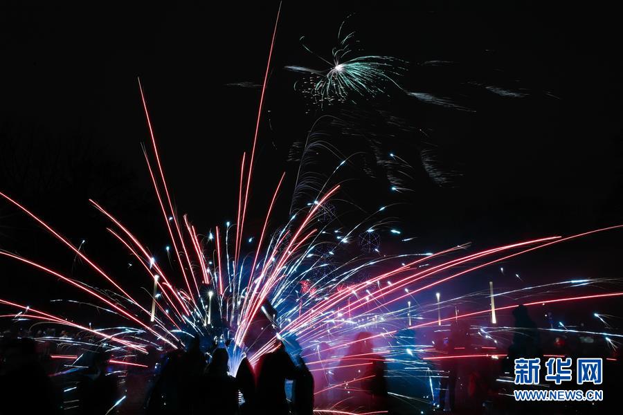 1月1日,比利時首都布魯塞爾上空煙花綻放。 新華社記者鄭煥松攝