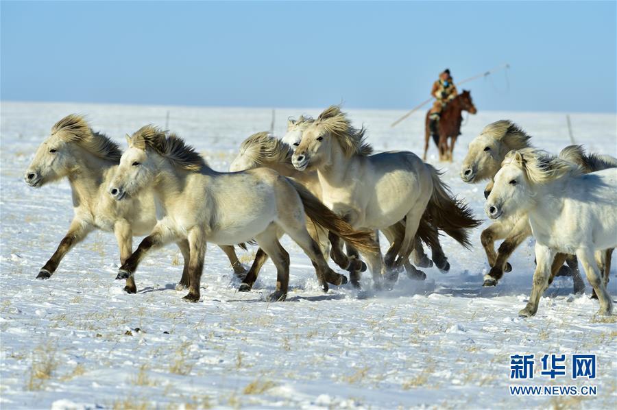 1月8日,牧民進(jìn)行套馬表演。 時(shí)下正值草原冬季旅游旺季,內(nèi)蒙古自治區(qū)西烏珠穆沁旗的牧民們?cè)谘┰弦徽股硎?,為游客展現(xiàn)獨(dú)特的民族風(fēng)情。 新華社記者 鄒予 攝