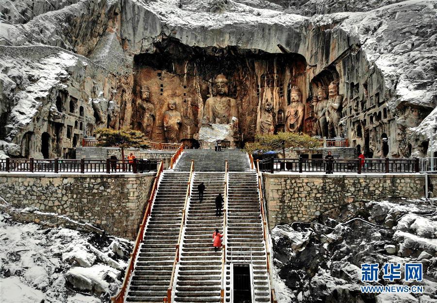 1月9日無(wú)人機(jī)拍攝的洛陽(yáng)龍門石窟奉先寺。 新華社記者李安攝