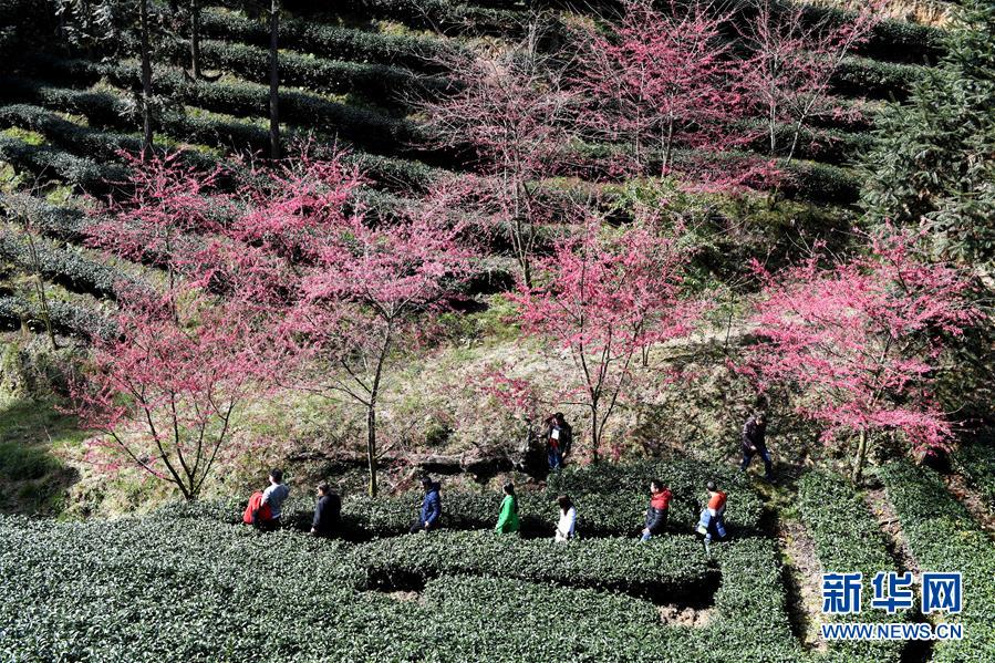 1月9日,游客在連城縣賴源鄉(xiāng)黃宗村的高山茶園賞櫻。 新華社記者 彭張青 攝