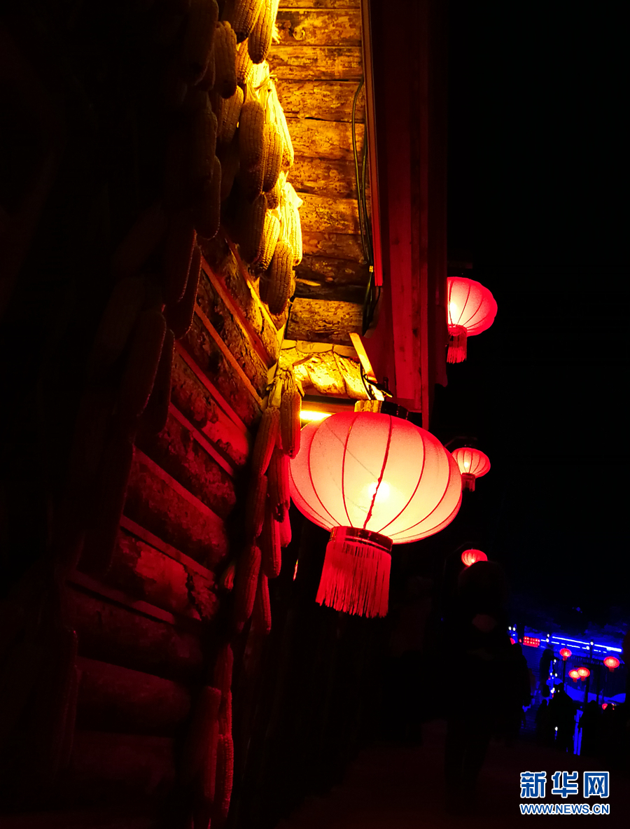 1月3日,燈光映照下的雪鄉(xiāng)一角。 新華網(wǎng)記者 張明宇 攝