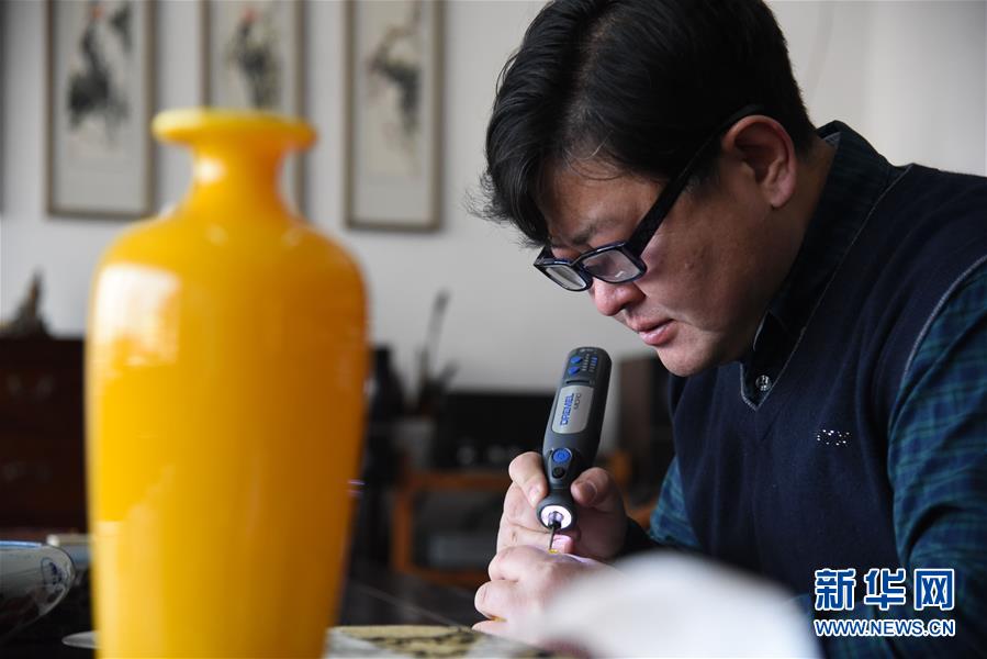 1月12日,孫云毅在制作雞油黃琉璃藝術(shù)品。 新華社記者王凱攝
