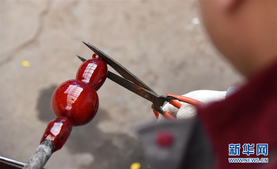 1月12日,孫云毅在吹制雞油黃琉璃藝術(shù)品。