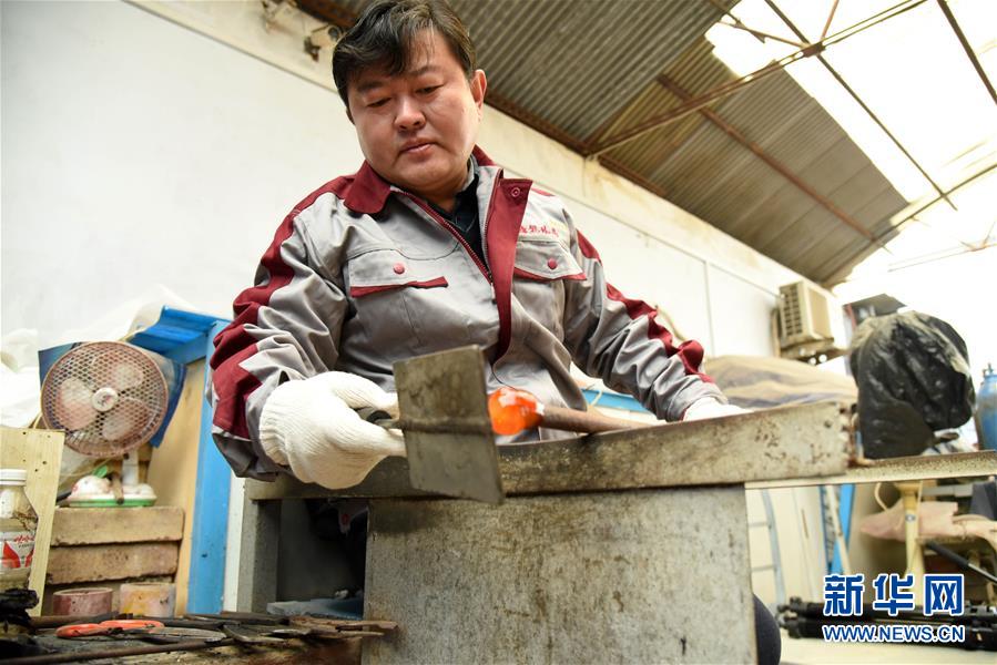 1月12日,孫云毅在制作雞油黃琉璃藝術(shù)品。 新華社記者王凱攝