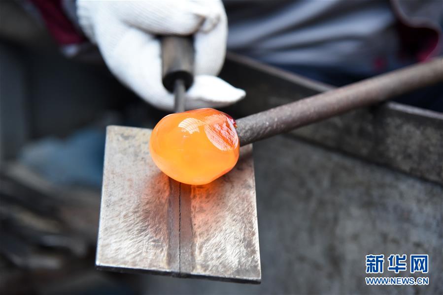 1月12日,孫云毅在制作雞油黃琉璃藝術(shù)品。 新華社記者王凱攝
