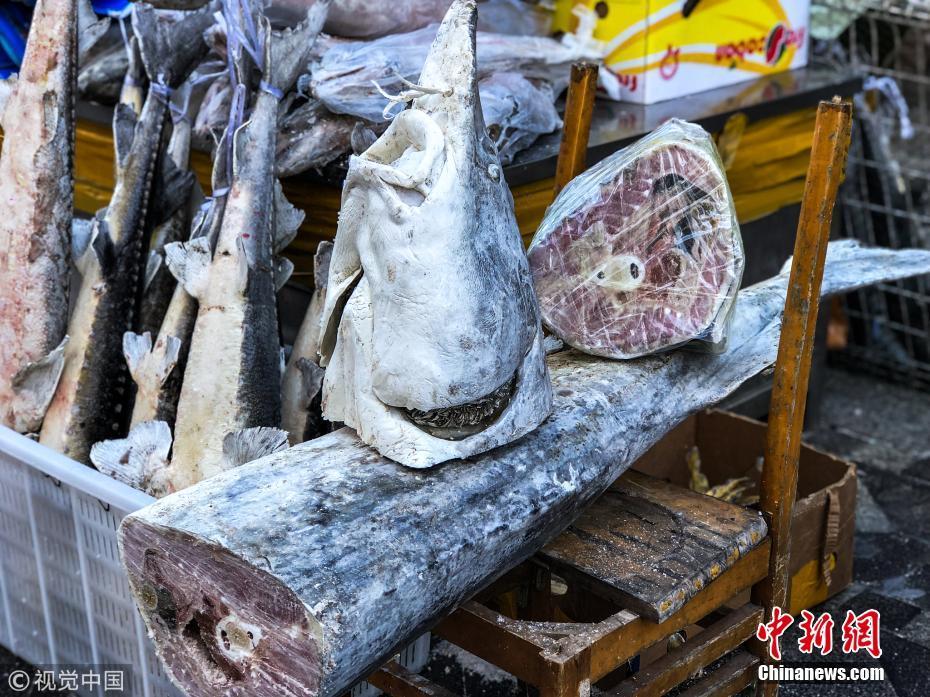 1月12日,黑龍江省佳木斯市撫遠(yuǎn)東極魚市,被鋸開的凍魚。棋簿紫 攝 圖片來源:視覺中國