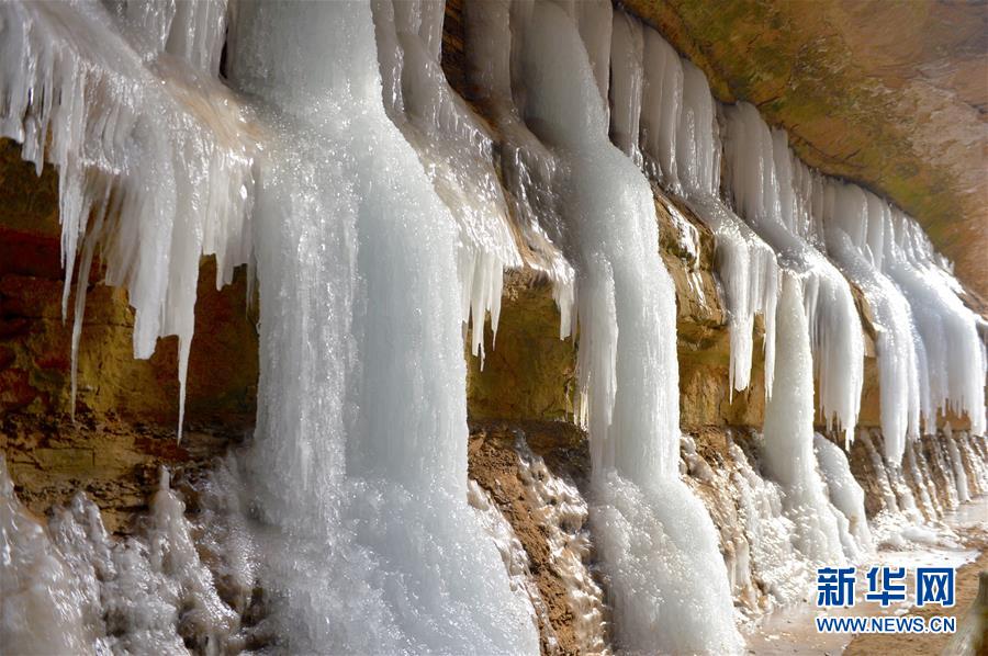 黑老鍋景區(qū)位于甘肅省慶陽市顯勝鄉(xiāng),峽谷長千余米,每年冬季泉水結(jié)成冰瀑,景色壯觀,吸引眾多游客前來游玩。 新華社記者李笑攝