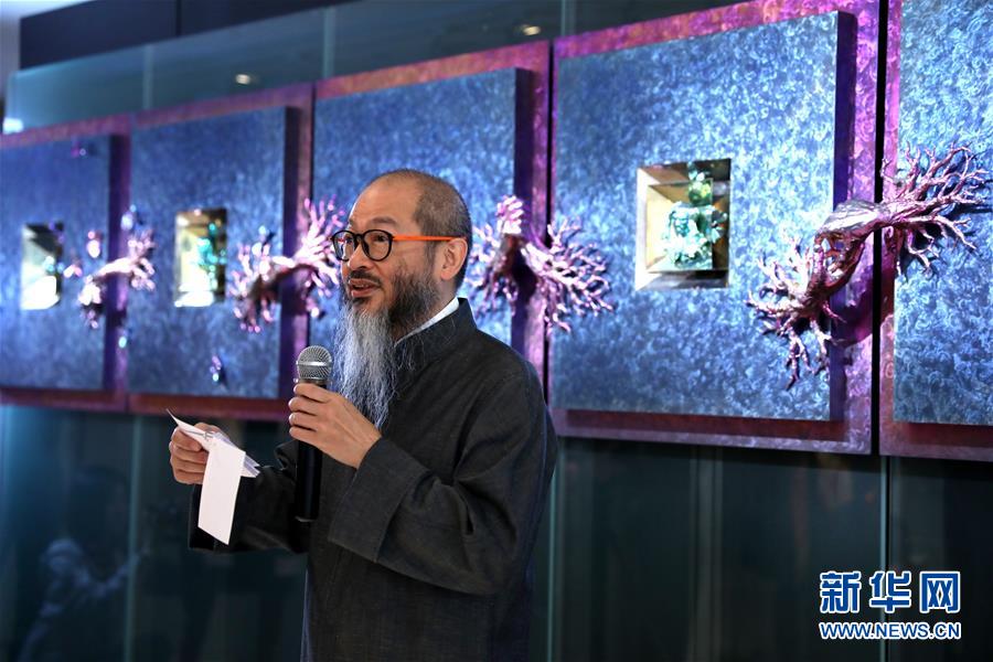 陳世英在自己的作品展覽會(huì)上(1月11日攝)。 新華社記者 吳曉初 攝