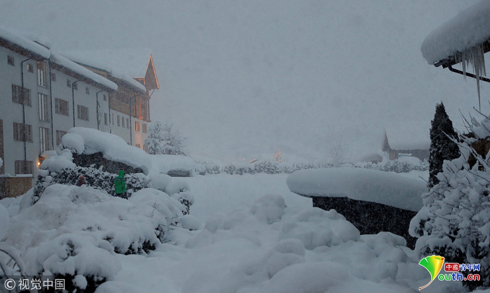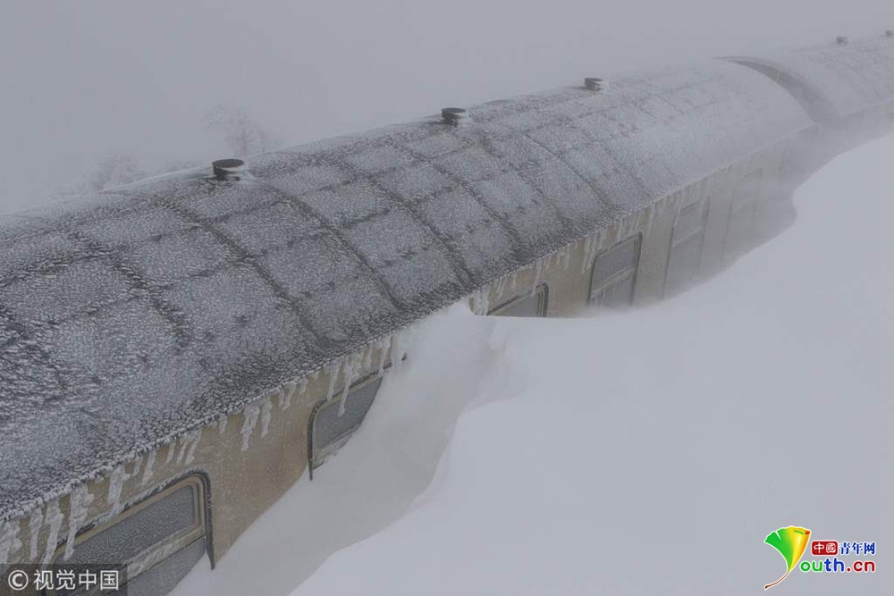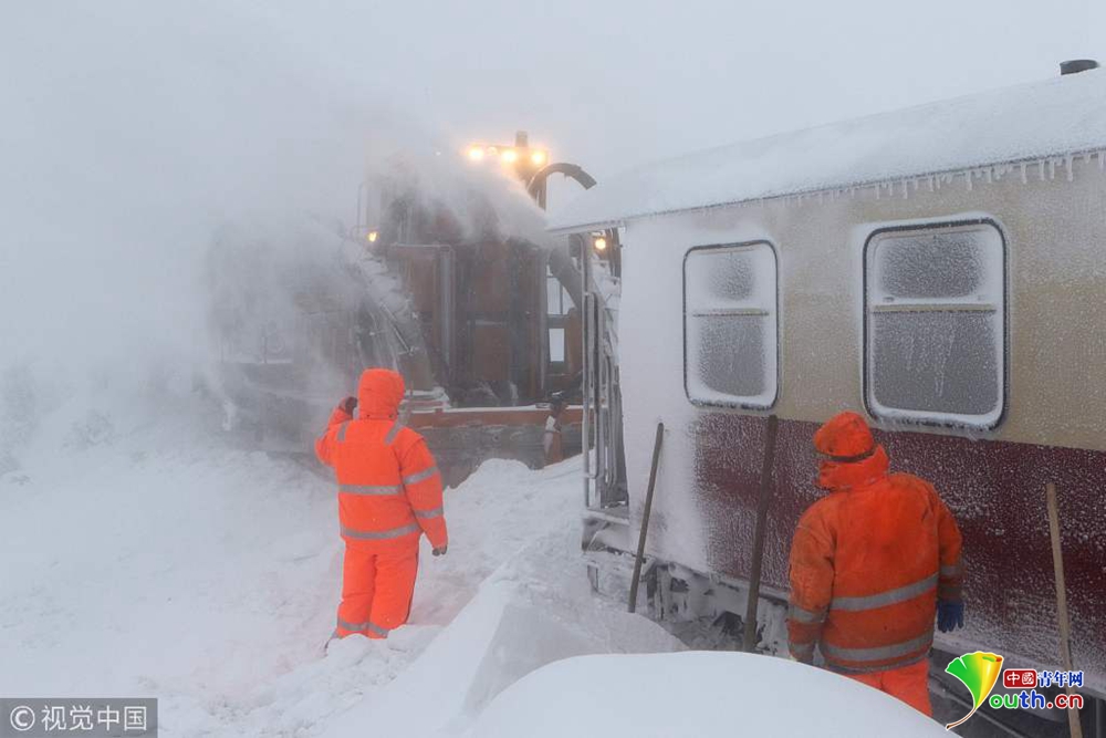 德國多地大雪紛飛 火車被困半路進(jìn)退不得
