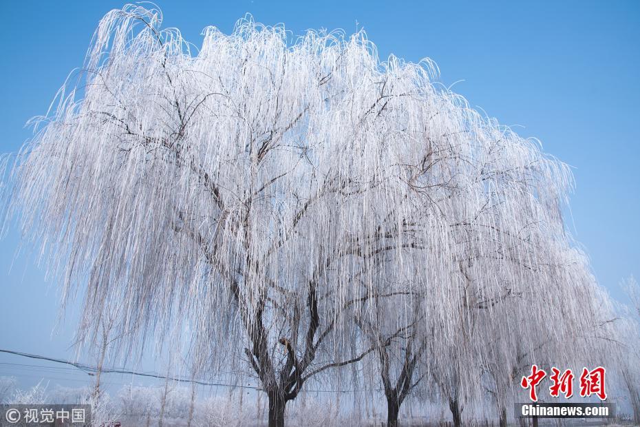 河北定州現(xiàn)霧凇景觀 吸引路人駐足拍照留念
