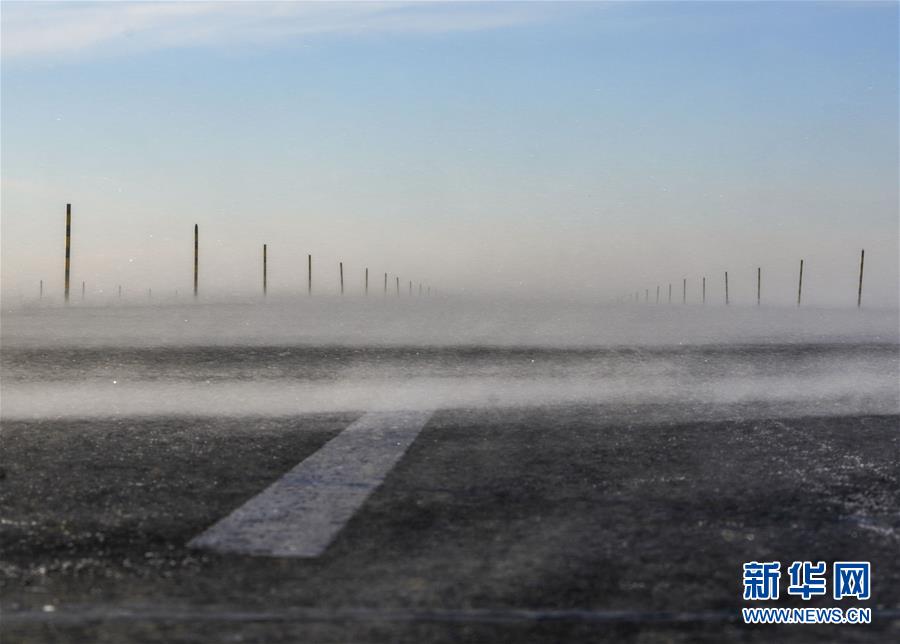 1月15日,在新疆瑪依塔斯風(fēng)區(qū)內(nèi),大風(fēng)將白雪吹到公路上。 瑪依塔斯風(fēng)區(qū)位于新疆西北部額敏縣境內(nèi)。這里東西風(fēng)交替頻繁,一年大風(fēng)天數(shù)超過150天,是世界上罕見的暴風(fēng)雪災(zāi)害地段。駐守在這里的新疆塔城公路管理局額敏分局瑪依塔斯應(yīng)急保障基地,近年來連續(xù)裝備拋雪機(jī)等冰雪搶險救災(zāi)裝備,有力地保障了這條道路的交通安全。 新華社記者趙戈攝