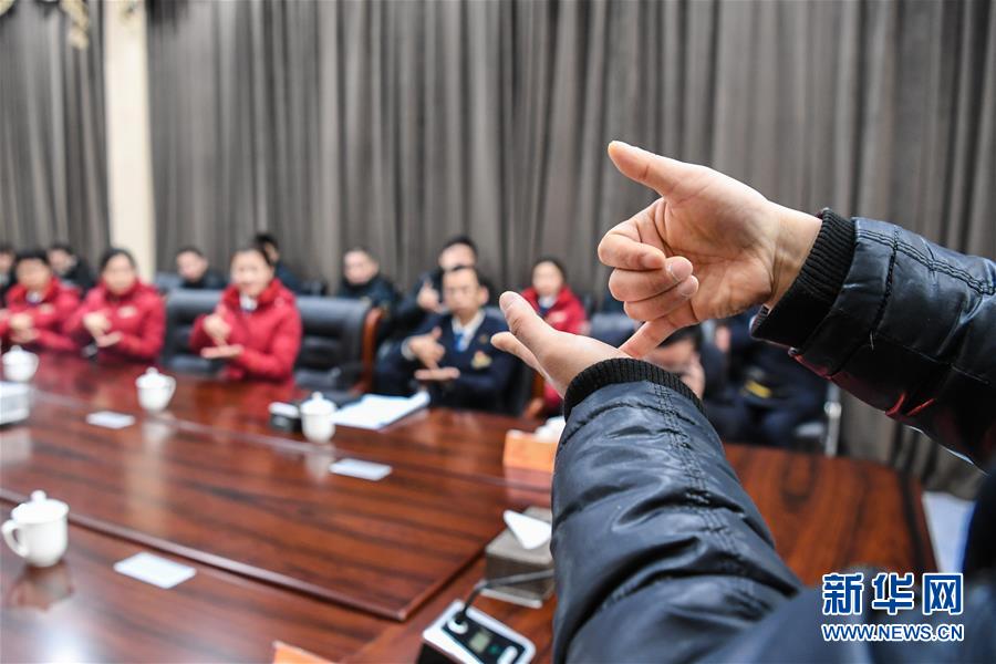 1月16日,指導老師在對鶴壁東站的職工進行手語培訓。 當日,中國鐵路鄭州局集團有限公司新鄉(xiāng)車務段鶴壁東站組織職工開展服務禮儀、手語等業(yè)務培訓,并進行非正常情況應急演練,為2019年春運做準備。 新華社記者李安攝