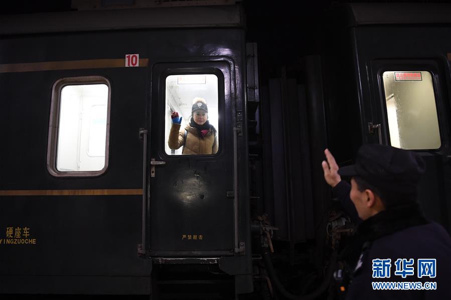 1月15日,在歙縣站,汪茂才與妻子王笑萍揮手告別。王笑萍每周乘火車從黃山市屯溪區(qū)來到歙縣與汪茂才團聚。 今年52歲的汪茂才是合肥鐵路公安處黃山站派出所歙縣警務(wù)室的一名線路民警,他所在的警務(wù)室負(fù)責(zé)皖南山區(qū)皖贛鐵路線約80公里范圍內(nèi)的線路安全。從警30年來,線路巡查、鐵路安全知識宣傳等是汪茂才的日常工作。多年來的徒步巡線,讓汪茂才練就了一雙快腿,十公里的路,汪茂才兩個小時就能走完。 汪茂才負(fù)責(zé)的鐵路沿線周邊村莊較多,很多房子都是沿鐵路線而建,有些村民為了圖方便,違規(guī)穿越鐵路線。加強對鐵路沿線居民的安全宣傳教育,成為汪茂才的一項重要工作,沿線村民的安全意識也越來越高。 對汪茂才這樣的線路民警來說,大多數(shù)時候都是“獨行俠”,“當(dāng)線路民警就要耐得住寂寞,守得住孤獨,與大山為伴,與線路為友,盡己所能,為鐵路安全運行保駕護航?!蓖裘耪f。 新華社記者劉軍喜攝