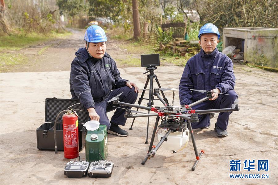 1月16日,噴火清障無人機(jī)的研發(fā)負(fù)責(zé)人何濤(右)和同事晏新展示噴火清障無人機(jī)。 1月16日,經(jīng)過3年多的研發(fā)和測試,重慶首臺(tái)噴火清障無人機(jī)在國網(wǎng)重慶永川供電公司無人機(jī)班正式投用。這臺(tái)多旋翼無人機(jī),通過搭載帶有燃料箱、油泵、自動(dòng)點(diǎn)火裝置的噴火吊艙任務(wù)模塊,可以對(duì)影響高空電力線路安全的飄掛物進(jìn)行定點(diǎn)障礙清除作業(yè)。 據(jù)噴火清障無人機(jī)研發(fā)負(fù)責(zé)人何濤介紹,過去高空清除異物主要靠人工進(jìn)行,為保證安全經(jīng)常需要停電作業(yè),因此他們結(jié)合實(shí)際工作經(jīng)驗(yàn)和高空電力線路的自身特點(diǎn),設(shè)計(jì)和制造出了噴火清障無人機(jī)。2018年測試期間,國網(wǎng)重慶永川供電公司無人機(jī)班在多種環(huán)境下成功執(zhí)行了50多次高空電力線路清障作業(yè)。 新華社記者 劉潺 攝