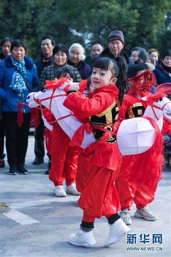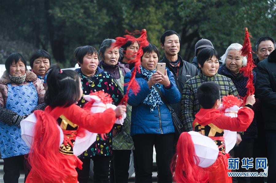 1月16日,新塘村村民觀看傳統(tǒng)非遺項目——下箬馬燈。下箬馬燈是發(fā)源于長興縣的民間舞蹈,距今已有1000多年歷史。 臨近春節(jié),浙江省長興縣開發(fā)區(qū)中心幼兒園的老師和孩子們來到長興縣太湖街道下屬的新塘村,為村民表演文藝節(jié)目,用喜慶的傳統(tǒng)舞蹈營造節(jié)日氣氛。另外孩子們還用紙盒、瓶子、彩色包裝紙等廢舊物品制作了環(huán)?;簦徒o村民,倡導低碳環(huán)保的節(jié)日新風。 新華社記者 徐昱 攝