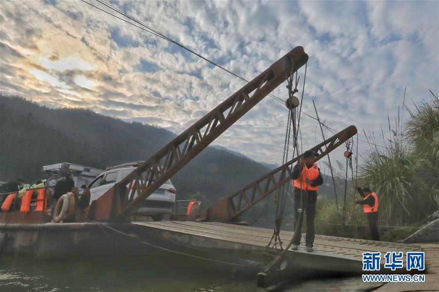 1月22日,渡輪在八吉渡口接送群眾(無人機(jī)拍攝)。新華社記者 歐東衢 攝