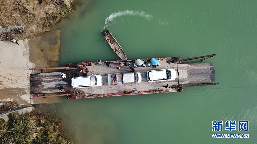 1月22日,渡輪在八吉渡口接送群眾(無人機(jī)拍攝)。新華社記者 歐東衢 攝