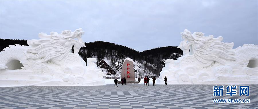 1月24日,在黑龍江省漠河市北極村,游客在神州北極廣場(chǎng)游玩。新華社記者王毓國攝