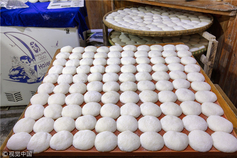 2019年1月26日,重慶中山古鎮(zhèn),880桌“千米長宴”5萬人共品年味。街坊們在頭天就開始準(zhǔn)備各種菜肴與小吃。