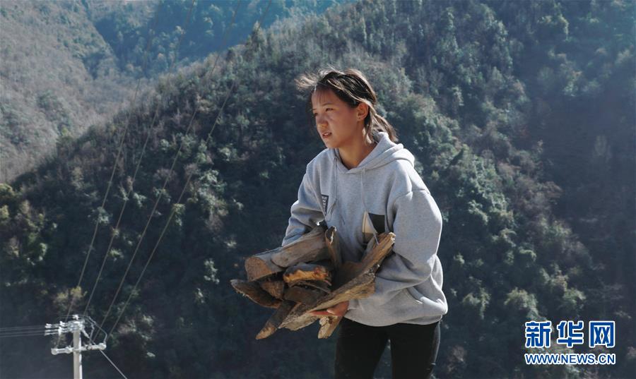 1月24日,在云南省蘭坪縣,褚福妹搬運柴火準(zhǔn)備燒飯。