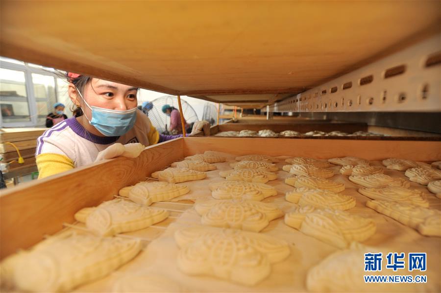 1月31日,河北黃驊市一家面花作坊的工人在查看面花。 河北黃驊市有著過年蒸面花的習(xí)俗。春節(jié)前夕,當(dāng)?shù)孛婊ㄖ谱鞴S加班加點制作面花,供應(yīng)春節(jié)市場。 新華社記者牟宇攝