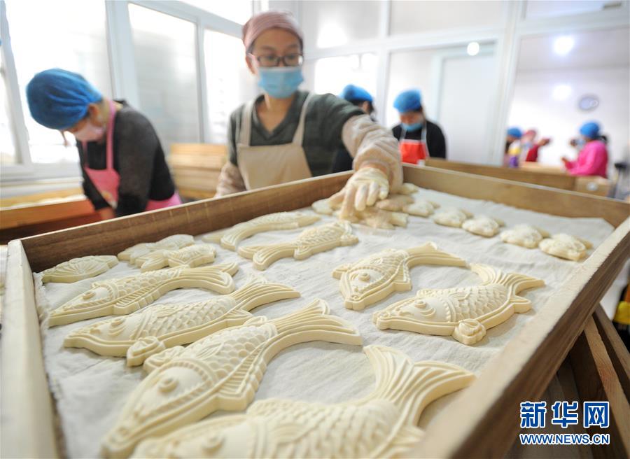 1月31日,河北黃驊市一家面花作坊的工人將制作好的面花擺放在蒸屜里。 河北黃驊市有著過年蒸面花的習(xí)俗。春節(jié)前夕,當(dāng)?shù)孛婊ㄖ谱鞴S加班加點(diǎn)制作面花,供應(yīng)春節(jié)市場(chǎng)。 新華社記者牟宇攝