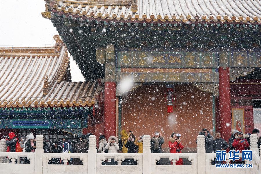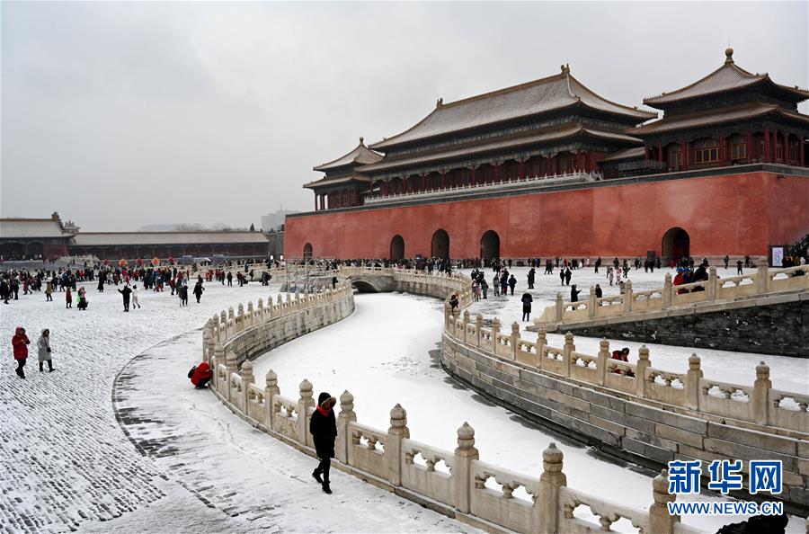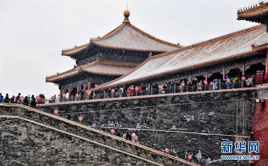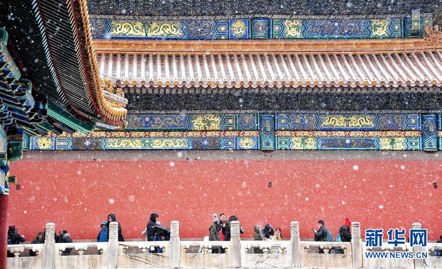 2月14日,游客在雪中游覽北京故宮。 當日,北京降雪,大批游人來到故宮游覽賞雪。 新華社記者 金良快 攝