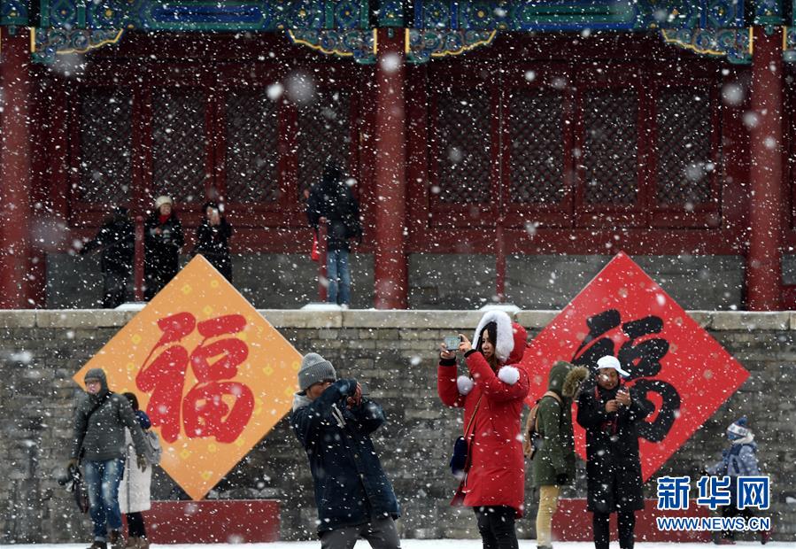 2月14日,游客在北京故宮游覽。 當日,北京降雪,大批游人來到故宮游覽賞雪。 新華社記者 金良快 攝