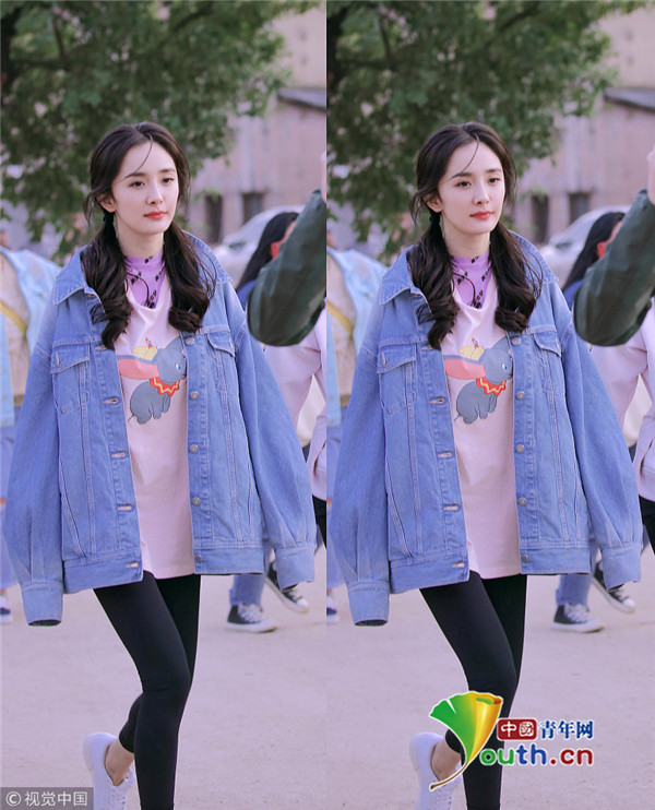 2019年3月12日,湖南長(zhǎng)沙,楊冪錄制某綜藝節(jié)目路透曝光。她扎著雙馬尾甜美可愛似少女,穿oversized的牛仔外套和寬大T恤,戴著防曬的護(hù)袖,身材十分纖細(xì)苗條。錄制期間,楊冪氣質(zhì)明艷靈動(dòng)活潑,元?dú)鉂M滿青春感爆棚。