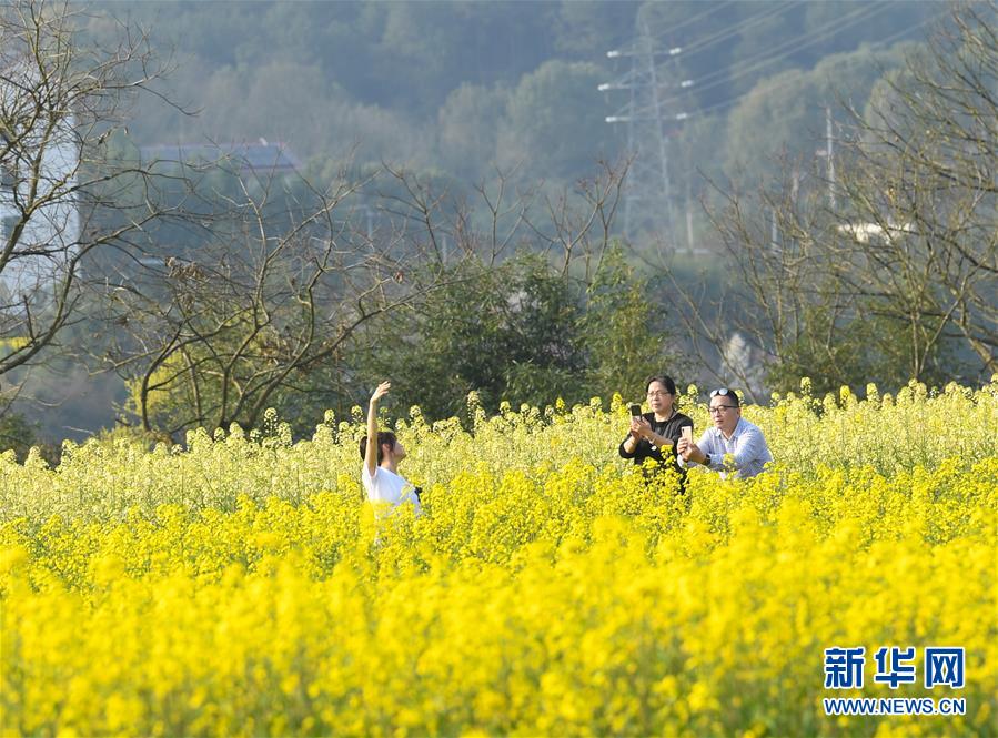 3月19日,游人在下涯鎮(zhèn)油菜花海中留影。近日,浙江省建德市下涯鎮(zhèn)油菜花盛開,吸引不少游客前來(lái)踏春。 新華社記者翁忻旸攝